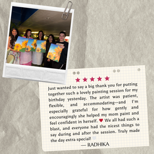 From birthdays and bachelorettes to family get-togethers and reunions, we turn every occasion into a colorful celebration. If you’re looking for a unique party idea, our paint workshops are the perfect way to laugh, bond, and create lasting memories with your friends and family. No experience needed-just bring your people, and we’ll bring the brushes, paints, and fun.